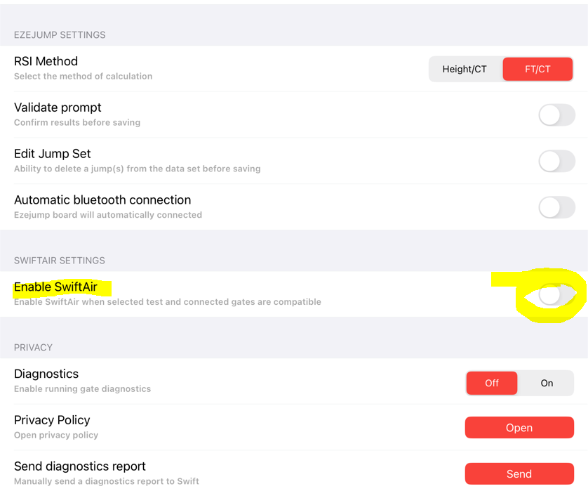 - Step 1 - Ensure you have enabled Swift air in the Syncro app (Settings). Scroll to the bootom the page, look for the SwiftAir option and "enable". The images below show the App with Swiftair disabled, and then Enabled. Not that you will NOT see the SwiftAir option without a valid subscription.