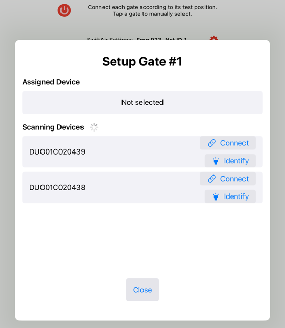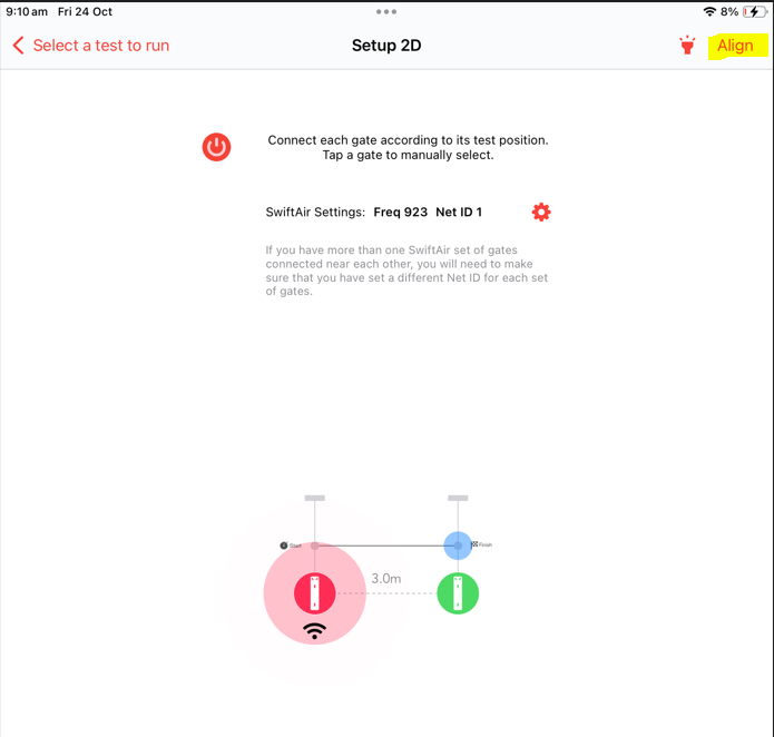 NOTE: SwiftAir , at this stage has only been released for linear drills. i.e. drills where the gates are sequentially triggered, and no gate is triggered more than once. For other drills the system will drop back to Wifi connection.